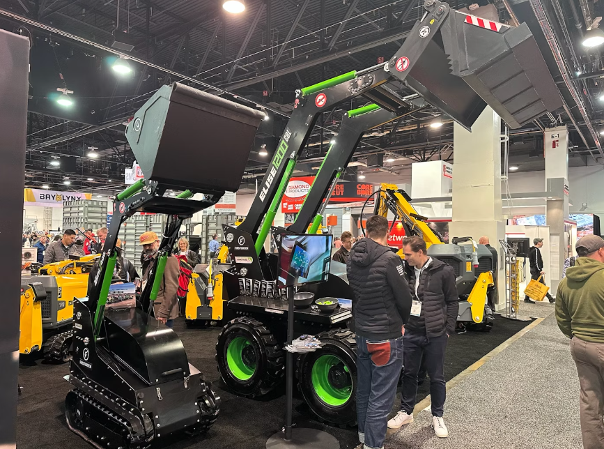 Brokk 在其展位上展示了Firstgreen的遥控 Elise 1200 CBL 迷你滑移装载机和 MiniZ 400 迷你履带式装载机。