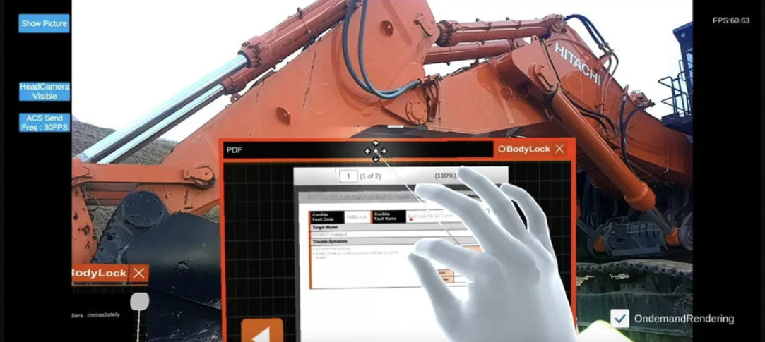 目前,缺乏训练有素的人员来对建筑和采矿机械进行维修和保养工作是该行业面临的主要挑战之一,因此,简化检查、维修和其他相关工作是当务之急。技术人员通常在智能手机和平板电脑上使用多个数据源,例如状态报告、服务手册和零件目录。然而,他们在双手忙碌的情况下操作移动设备、查看多个数据源以及通过在线电话与专业技术人员沟通时面临困难。XR 智能